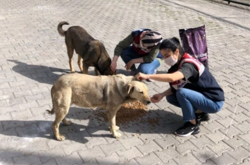 Zonguldak’ta jandarma ekipleri sokağa çıkma kısıtlaması nedeniyle yiyecek bulmakta zorlanan sokak hayvanlarını besledi.