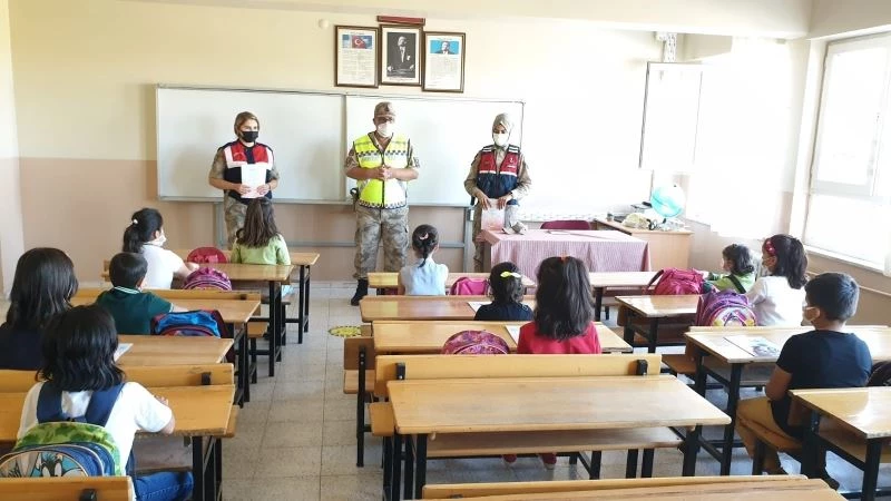 Malatya İl Jandarma Komutanlığı Aile İçi Şiddetle Mücadele ve Çocuk Kısım Amirliği görevlileri, yüz yüze eğitimin açılmasıyla birlikte eğitim gören öğrencilere boyama kitabı, kalem, broşür hediye ettiler.