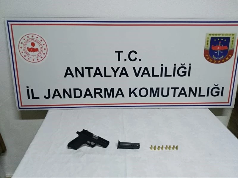 Antalya Cumhuriyet Başsavcılığı koordinesinde, Antalya’nın Döşemealtı ilçesi Kovanlık Yol Kontrol Noktasında 12 Eylül Pazar günü yapılan uygulamada F.U. isimli şahsa ait araçta 1 adet 7.65 mm çapında ruhsatsız kuru sıkıdan bozma tabanca, 1 adet şarjör ve 8 adet 7.65 fişek ele geçirildi.