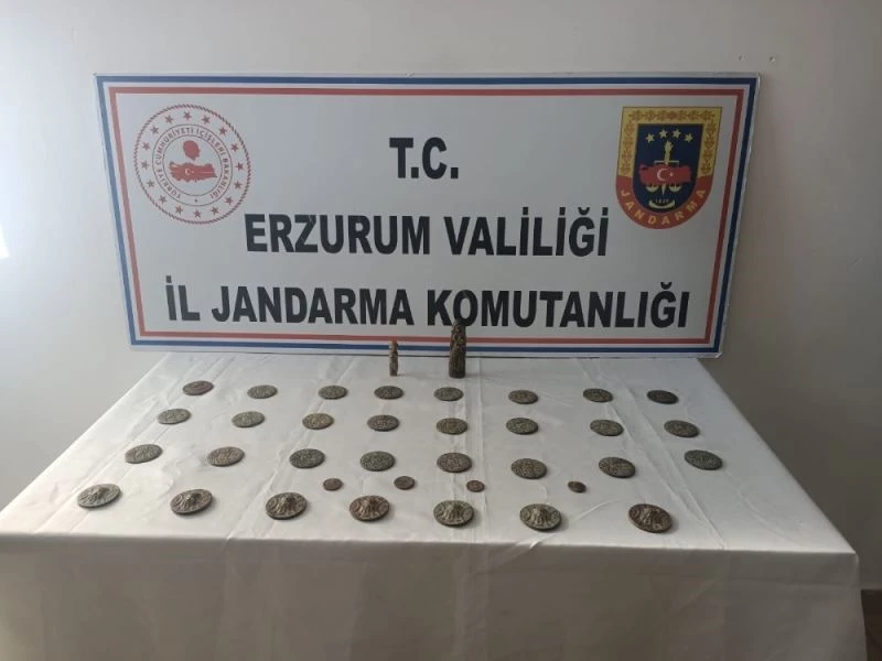 İl Jandarma Komutanlığı ekiplerinin istihbari çalışmalar neticesinde, Erzurum’un Hınıs ilçesine Bingöl ve Malatya illerinden gelen bazı şahısların tarihi eser nitelikli malzemeleri satmaya çalıştıkları bilgisi alındı. Bunun üzerine Hınıs ilçesi Varto karayolunda şüpheli olarak tespit edilen iki araç durdurularak araçta ve şüphelilerin üzerinde yapılan aramada; Bizans ve Roma dönemine ait olduğu değerlendirilen 31 adet çeşitli çap ve ebatlarda gümüş madalyon, 2 adet çeşitli çap ve ebatlarda gümüş heykel ve 4 adet çeşitli çap ve ebatlarda gümüş sikke ele geçirildi.