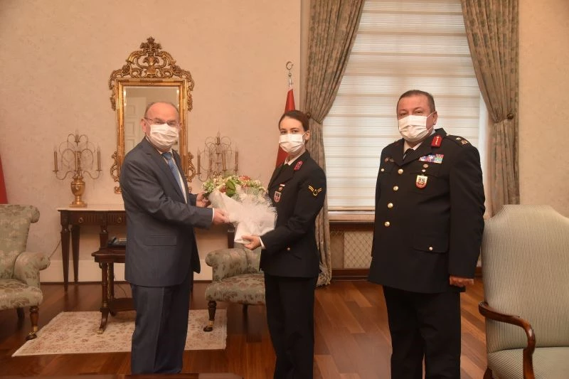 Ziyarette, İl Jandarma Komutanlığı çalışmalarına ilişkin Vali Karadeniz’e bilgi veren ve Jandarma Teşkilatı’nın 182 yıldır halkının, milletinin yanında, vatana hizmet etmeye devam ettiğini belirten İl Jandarma Komutanı Tuğgeneral Selçuk Yıldırım, “Bundan sonra da ülkemize bağlı olacağız. Jandarma Teşkilatı her zaman halkının yanında olmuştur. Milli mücadele yıllarımızda vatanımız ve milletimiz için savaştık. Kıbrıs mücadelesi, terörle mücadele ve diğer çalışmalarda jandarmamız, silahlı kuvvetlerimizle beraber her zaman için ön saflarda olmuştur. Bundan sonrada aynı şekilde çalışmaya devam edecektir” dedi.