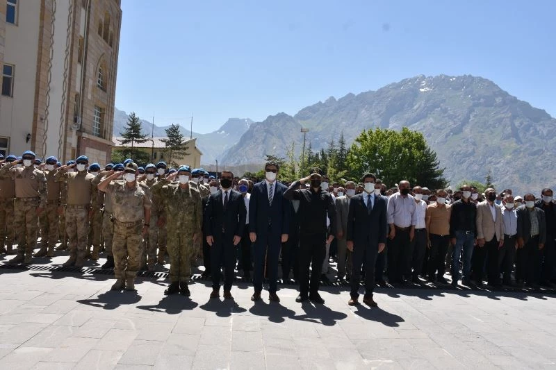 Hakkari Valiliği önündeki törende, İl Jandarma Komutanı Tuğgeneral Ahmet Kavukçu tarafından Atatürk Anıtı’na çelenk sunuldu. Saygı duruşunda bulunulması ve İstiklal Marşı’nın okunmasının ardından günün anlam ve önemine ilişkin konuşmanın yapılmasıyla tören sona erdi.