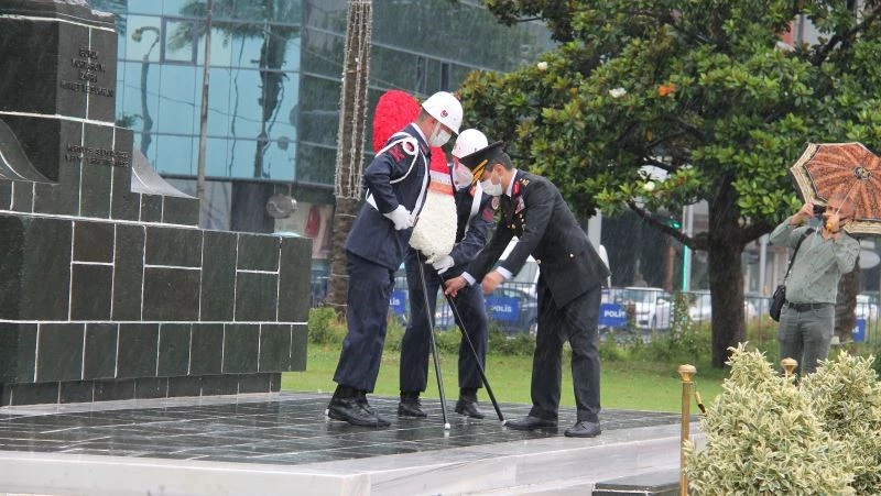 Sağanak yağış altında gerçekleşen ve korona virüs (Covid-19) tedbirleri nedeniyle kısa tutulan törende, İzmir İl Jandarma Komutanlığı mensupları sosyal mesafe kurallarına göre hizaya geçerken, maske ile de önlem aldı. İzmir İl Jandarma Komutanı Tuğgeneral Hüseyin Hilmi Atabay’ın da katıldığı tören, saygı duruşu ve İstiklal Marşı’nın ardından sona erdi.