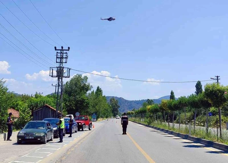 Muğla İl Jandarma Komutanlığı Trafik Şube Müdürlüğü ekipleri sorumluluk bölgelerinde trafik akışını havadan helikopter ile denetledi.