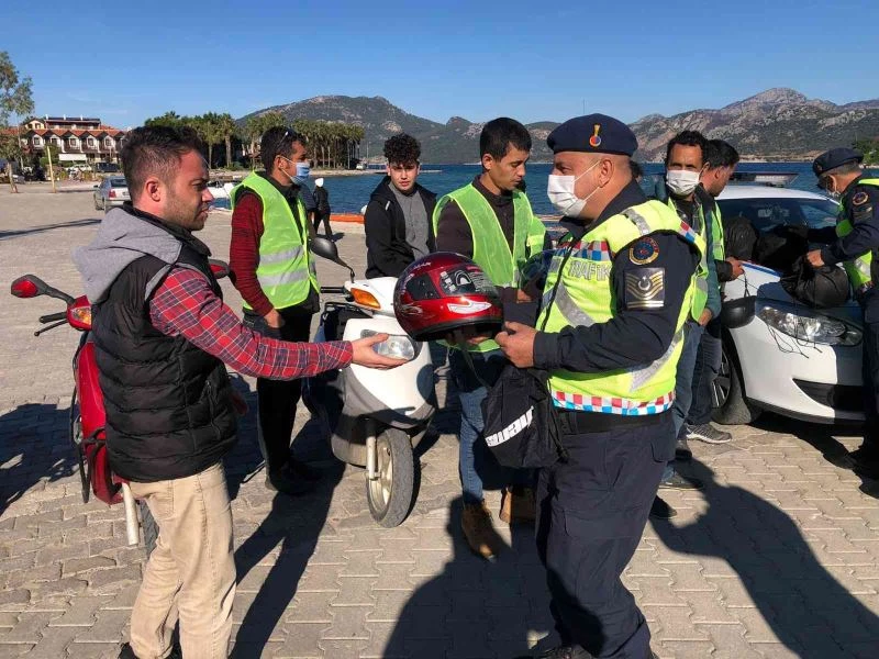 Muğla İl Jandarma Komutanlığı ve Marmaris İlçe Jandarma Komutanlığı Trafik Timleri tarafından Selimiye, Bozburun, Hisarönü, Değirmenyanı ve Orhaniye mahallerinde trafik denetimleri gerçekleştirildi. Yapılan trafik denetimlerinde motosiklet sürücülerine kask takmanın önemi anlatıldı. Ayrıca güvenli sürüş konusunda farkındalık oluşturmak ve trafik kurallarına dikkat çekmek amacı ile sürücülere eğitim verildi. Kask takan sürücülere teşekkür eden ekipler, kaskı olmayanları da uyarılarak kask dağıttı. Denetimler boyunca 60 adet kask, 200 adet de reflektif yelek hediye eden Jandarma Trafik Timleri, eğitim ve denetimlerin daha sık aralıklar ile devam edeceğini belirtti.