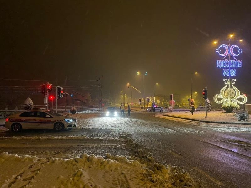 Düzce’de akşam saatlerinde başlayan ve aralıksız yağan kar yağışı, Düzce İl Jandarma Komutanlığı Jandarma Trafik Timlerini de harekete geçirdi. Kış mevsimiyle birlikte kar, yağmur yağışı ve buzlanma gibi olumsuz hava koşulları sebebiyle karayolu ulaşımında olumsuzluk yaşanabilecek noktalarda denetimlerini artıran jandarma trafik timleri, sorumluluğunda bulunan özellikle Düzce- Zonguldak D-655 karayolunda, il ve köy karayollarında yol açma çalışması yapan ekiplere yardımcı oldu.
