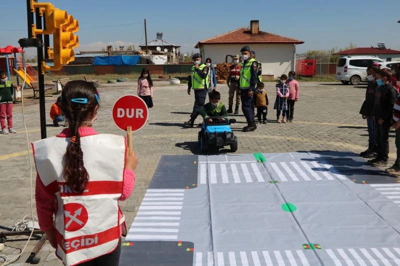 Iğdır İl Jandarma Komutanlığı ekiplerince merkez Halfeli beldesi Milli İrade İlkokulunda, öğrencilere yönelik görsel ve uygulamalı olarak trafik eğitimi verildi.