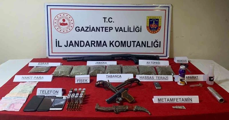 Gaziantep İl Jandarma Komutanlığı ekipleri, 09-15 Mart tarihleri arasında kaçakçılık olayları ve uyuşturucuyla mücadele kapsamında çok sayıda operasyon gerçekleştirdi. Ekipler operasyon sonucu; 4 kilo 254 gram jamaika, 601 gram metamfetamin, 244 gram kubar esrar, 5 gram kokain, 16 adet uyuşturucu kullanma aparatı, 3 adet tabanca, 1 adet av tüfeği, 31 adet mühimmat, 1 adet kama, 2 adet hassas terazi, 13 bin 465 Türk Lirası ele geçirdi. Olaylarla ilgili 39 şahıs hakkında yasal işlem başlatılırken Gaziantep İl Jandarma Komutanlığı, halkın huzur ve güvenliği için çalışmaların artarak devam edeceğini vurguladı.