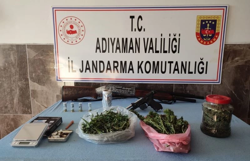 Adıyaman’da jandama ekipleri bir işyerinde yaptıkları aramada uyuşturucu ve kuru sıkı tabanca ele geçirdi.