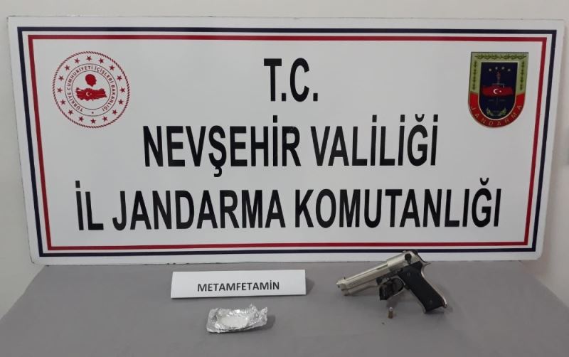 Alınan bilgilere göre, jandarma ekipleri tarafından şüphe üzerine durdurulan 1 kişinin üzerinde yaptığı aramada 9 gram metemfetamin, 1 adet tabanca ve tabancaya ait mermiler ele geçirildi. Şüpheli D.T. jandarma ekipleri tarafından gözaltına alınırken adli tahkikatın başladığı öğrenildi.