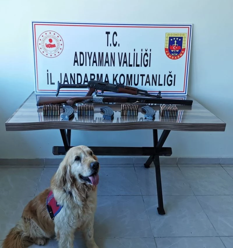 Adıyaman İl Jandarma Komutanlığı ekipleri bir şahısta uzun namlulu silah olduğu bilgisi alınması üzerine çalışma başlattı. B.Ö. isimli şahsın evinde yapılan aramada 1 adet seyyar dipçikli kaleşnikof marka uzun namlulu silah, 3 adet kaleşnikof tüfeği şarjörü, 310 adet 7.62 mm çapında dolu kaleşnikof fişeği ve 1 adet av tüfeği ele geçirildi.
