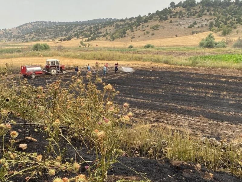 Jandarma ve köylüler yangını 500 dekarlık buğday ekili alana sıçramadan söndürdü
