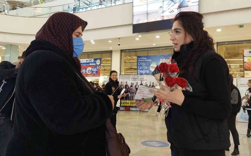 8 Mart Dünya Kadınlar Günü tüm ülkede olduğu gibi Tekirdağ’da da çeşitli etkinliklerle kutlanmaya devam ediliyor. Tekirdağ Valiliği koordinesinde İl Jandarma Komutanlığı ve İl Emniyet Müdürlüğü ekipleri, Tekirdağ merkez Süleymanpaşa ilçesindeki bir alışveriş merkezinde Dünya Kadınlar Günü için etkinlik gerçekleştirdi. Etkinlikte jandarma ve polis kadın personel, alışverişe gelen kadınlara karanfil dağıtarak, bilgilendirme broşürü dağıttı.