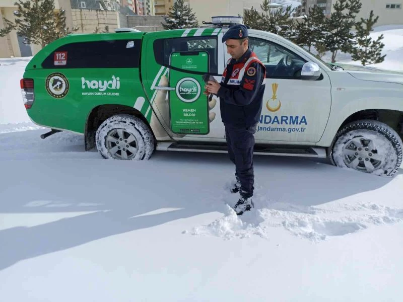 Kar yağışının etkili olduğu Erzurum’da Jandarma ekipleri yaban hayatı unutmadı.