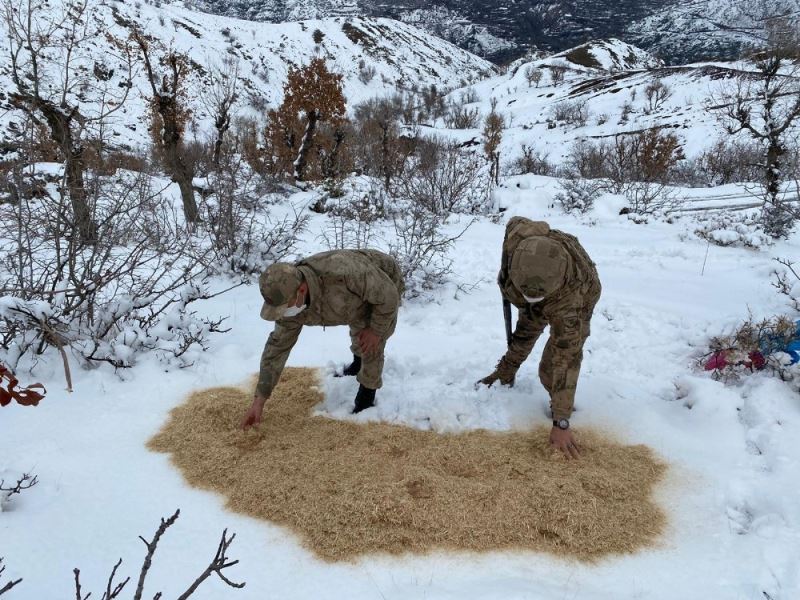 Jandarma ekipleri kar kalınlığının yoğun olduğu bölgelere kuru ot ve saman bırakarak yaban hayvanlarını yalnız bırakmadı.