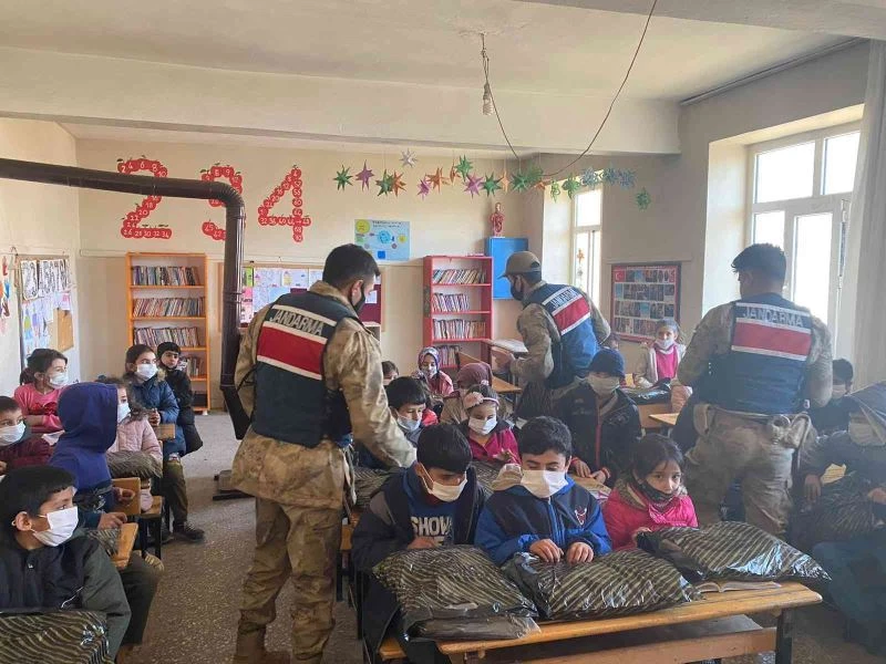 Adıyaman’da jandarma ekipleri ilkokul öğrencilerine kışlık mont dağıttı.