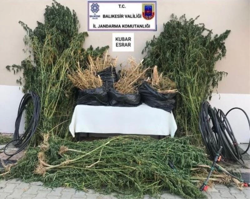 Balıkesir İl Jandarma Komutanlığı ekipleri, uyuşturucu madde imal ve ticaretine yönelik yapılan istihbari çalışmalar neticesinde, Sındırgı ve Manyas ilçelerinde yapılan operasyonlar da 4 şüpheli şahıs yakalanarak gözaltına alındı. Yapılan aramalarda 738 kök kenevir bitkisi, 34 kilo 530 gram kubar esrar, 200 gram kenevir bitkisi tohumu, 1 adet ruhsatsız av tüfeği ele geçirildi. Jandarmadaki işlemlerini müteakip adliyeye sevk edilen 4 şüpheliden 1’ i çıkarıldıkları mahkemece tutuklandı.