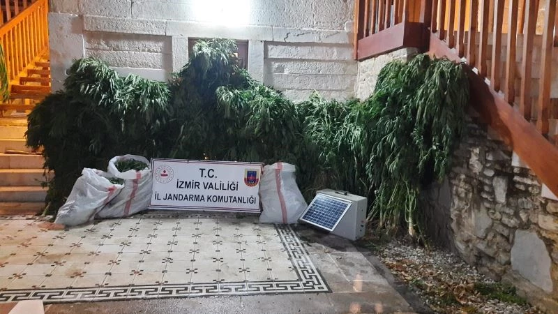İzmir İl Jandarma Komutanlığına bağlı birlikler tarafından 9 ilçede narkotik köpekleri ve drone destekli yapılan operasyonlarda, ormanlık alanda bin 966 kök kenevir, çeşitli türde uyuşturucu maddeler ele geçirildi, 11 kişi de gözaltına alındı.