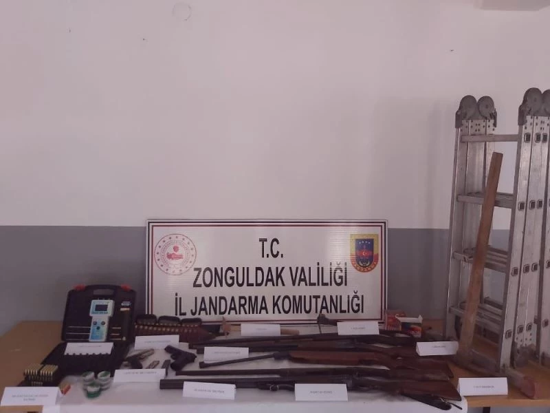 Edinilen bilgiye göre Zonguldak’ın Devrek İlçesi Yeniköy Köy’de kaçak kazı ihbarı alana Zonguldak İl Jandarma Komutanlığı İstihbarat Şube Müdürlüğü ve KOM Şube Müdürlüğü ekipleri H.D. (67) ve S.D. (56) isimli şahısların kendilerine ait bahçede define aramak için kaçak kazı yaptıkları ihbarı üzerine evlere baskın yaptı. Şahısların 5 metre derinliğinde 1 buçuk 5 metre çapındaki kuyuda kazı çalışması yaptıkları tespit edilirken evde yapılan aramada 2 adet faturasız kurusıkı tabanca,1 adet ruhsatsız tek kırma av tüfeği, 3 adet ruhsatsız çift kırma av tüfeği, 1 adet faturasız havalı tüfek, 1 adet define arama detektörü, 180 adet kurusıkı tabanca fişeği, 55 adet av tüfeği fişeği, 8 kutu havalı tüfek saçması, 2 adet kazma, 1 adet kürek, 1 adet açılır-katlanır merdiven, 1 adet keser ele geçirildi. Ekipler tarafından ele geçirilen malzemelere el konulurken H.D. (67) ve S.D. (56) isimli şahıslara Kültür ve Tabiat Varlıklarını Koruma Kanununa Muhalefet suçundan soruşturma başlatıldı.