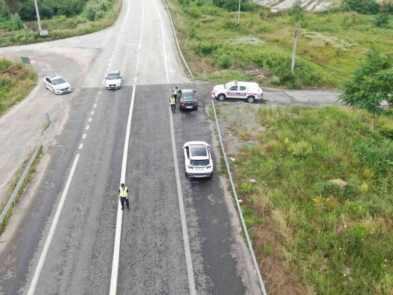 DÜZCE – Düzce Merkez Gölyaka ilçe bağlantı yolunda Jandarma ekipleri dron ile havadan denetim yaptı.