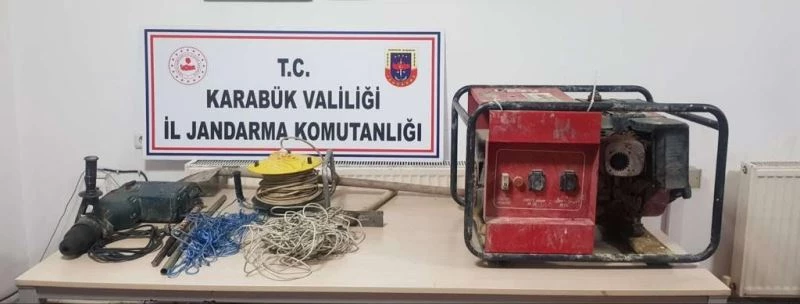 Şahısların araçlarında yapılan aramada jeneratör, hilti, makaralı seyyar kablo, ip, kazma, kürek, internet kablosu ve 2 adet hilti ucu ele geçirildi.