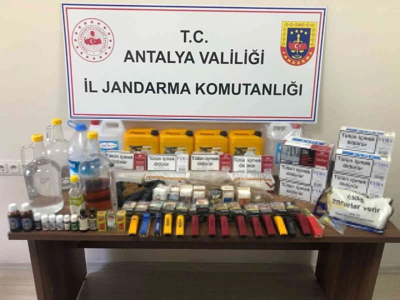 Antalya’da jandarma tarafından yapılan operasyonda kaçak alkol ve kaçak sigara ele geçirildi.
