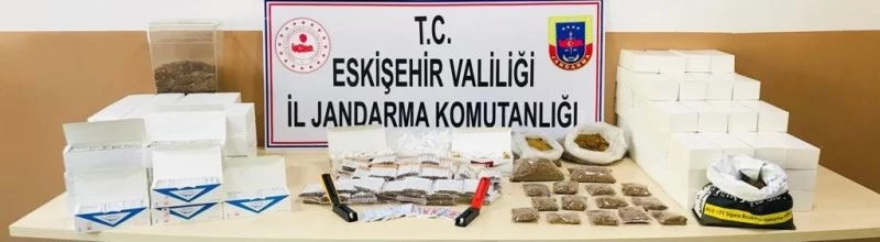 Eskişehir’de bir bakkal dükkanında satılmak istenen bandrolsüz ve hologramsız makoronlar ile kaçak tütünler, jandarmanın operasyonuyla ele geçirildi.