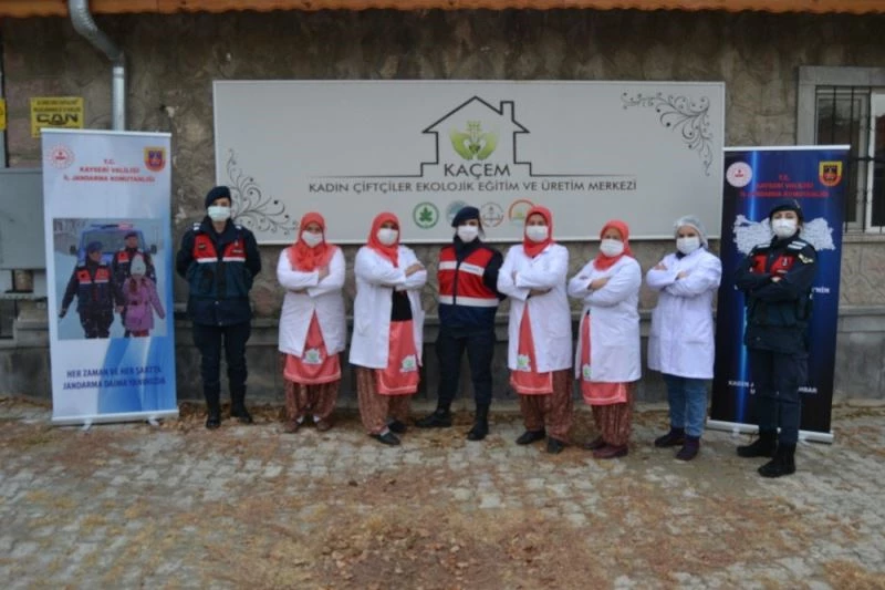 Kayseri İl Jandarma Komutanlığı Aile İçi Şiddetle Mücadele ve Çocuk Kısım Amirliği tarafından köylerdeki kadınlara yönelik Kadın Destek Uygulaması (KADES) hakkında bilgi verildi.