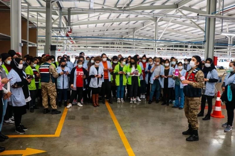 İl Jandarma Komutanlığınca kadın çalışanlara KADES uygulaması tanıtıldı. Kadına Yönelik Şiddetle Mücadele kapsamında; İl Jandarma Komutanlığı Merkez İlçe Jandarma Komutanlığı sorumluluk bölgesinde bulunan Organize Sanayi Bölgesinde faaliyet gösteren tekstil fabrikalarındaki 480 kadın çalışana yönelik, Kadın Destek Uygulaması (KADES) ile ilgili bilgilendirme yapılarak 150 kadın çalışanın telefonuna KADES uygulaması yüklemesine yardımcı olundu.