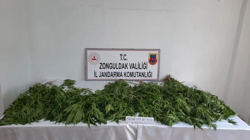 Zonguldak İl Jandarma Komutanlığı ekipleri izinsiz kenevir yetiştiren şahsın evine baskın düzenlendi. Baskında 69 kök bitkisi ele geçirildi.