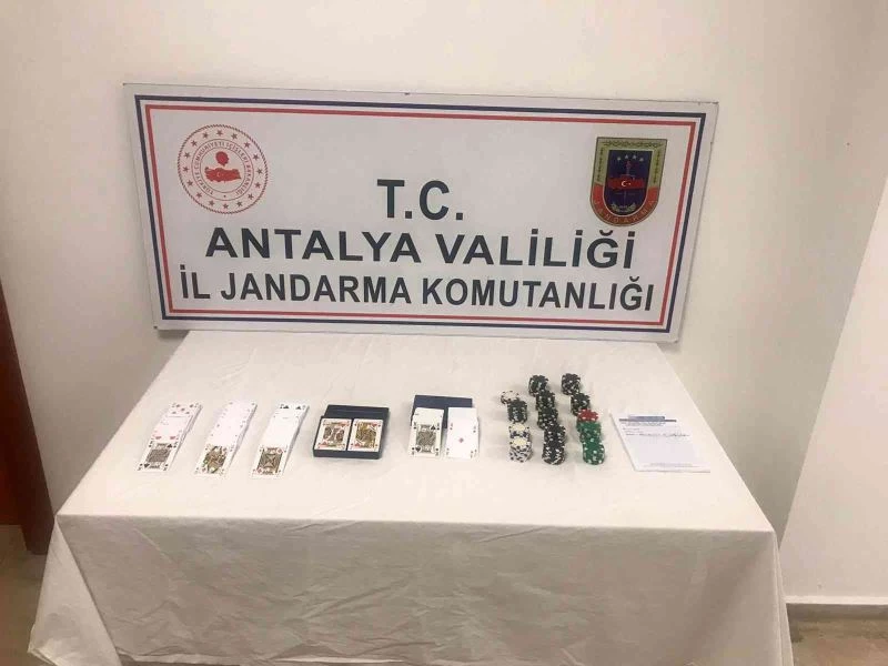 Manavgat İlçe Jandarma Komutanlığı ekipleri tarafından Manavgat ilçesi Side Mahallesinde 1 Ocak Cumartesi günü E.K. isimli şahsın işlettiği kıraathanede yapılan kontrolde R.M., K.A., H.B. isimli şahısların kumar oynadığı belirlendi. Suçta kullanılan ve oyun oynandığı tespit edilen iskambil kağıdı, pul, kumar oynayan şahısların alacak verecek durumunu gösterir kayıtların bulunduğu yazboz kağıdı ele geçirildi.