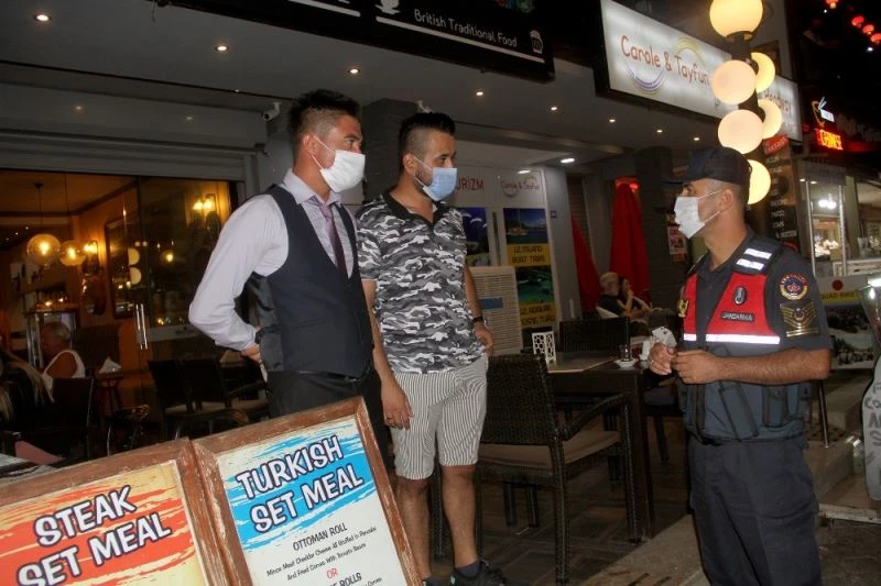 Ölüdeniz Jandarma Karakol Komutanlığına bağlı ekiplerin İlçenin en yoğun olduğu Hisarönü barlar sokağında denetim ve uyarılarda bulundu.