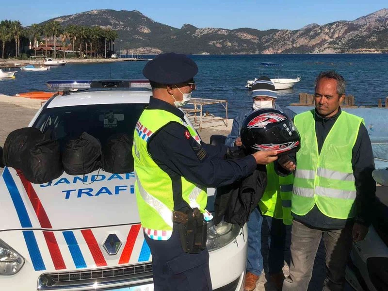 Muğla İl Jandarma Komutanlığı Trafik timleri tarafından “Kaskımla Güvendeyim” projesi kapsamında motosiklet sürücülerine kask dağıtımı yapıldı.