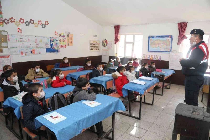 Van’ın Başkale ilçesindeki jandarma trafik ekipleri tarafından köy okullarındaki öğrencilere yayanın önceliği, emniyet kemerinin önemi ve diğer trafik kuralları anlatıldı.