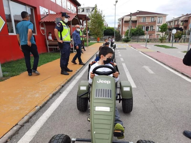 Kocaeli’de jandarma ekipleri tarafından öğrencilere, trafik kuralları bilincinin kazandırılması amacı ile uygulamalı eğitim veriliyor.