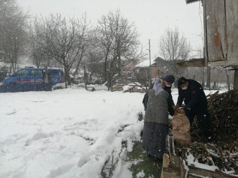 Samsun’un Salıpazarı ilçesinde jandarma ekipleri, yaşlı bir çiftin sobada yakmak üzere kullanacakları odunları kırarak evlerine kadar taşıdılar.