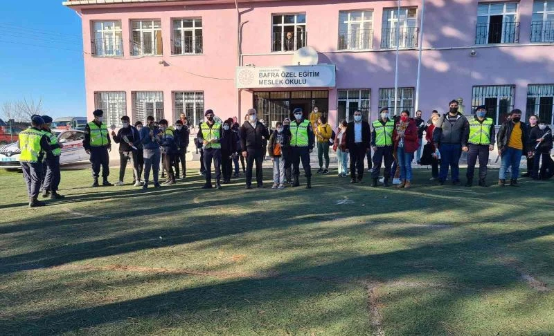 Samsun Bafra İlçe Jandarma Komutanlığı Jandarma Trafik Timleri tarafından Köseli Özel Eğitim Meslek Okulunda eğitim gören öğrencilere "3 Kasım Dünya Engelliler Günü” kapsamında gül dağıtıldı.