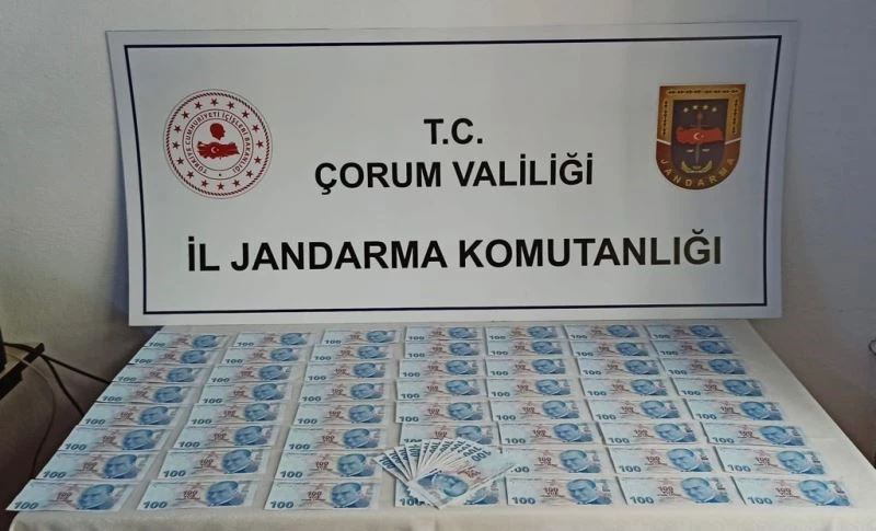 Çorum İl Jandarma Komutanlığına bağlı ekiplerce düzenlenen operasyonda 7 bin 900 TL sahte banknot ele geçirildi.