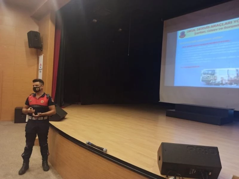 Manisa’nın Yunusemre ilçesinde jandarma ekipleri tarafından eğitim-öğretim yılı başlaması dolayısıyla okul servis şoförlerine yönelik eğitim verildi.