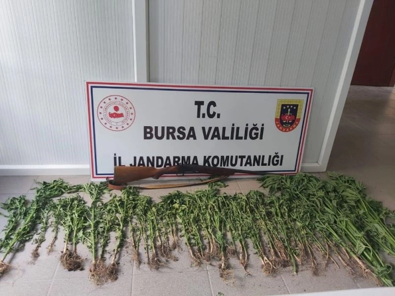 Alınan bilgilere göre, İnegöl’e bağlı Aşağıbalık Mahallesi’nde 46 yaşındaki F.A. isimli şahsın evinde ve tarlasında Hint keneviri ektiği bilgisi alan jandarma ekipleri, harekete geçti. Yapılan operasyonda 100 kök Hint keneviri ile bir adet ruhsatsız tüfek ele geçirildi. Olayla ilgili F.A. gözaltına alındı. Soruşturma sürdürülüyor.