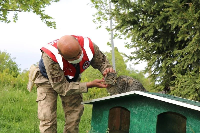 Elazığ’da jandarma ekipleri, Korona virüs (Covid-19) tedbirleri kapsamında uygulanan 17 günlük tam kapanmada sokak hayvanlarını beslemeyi ihmal etmedi.