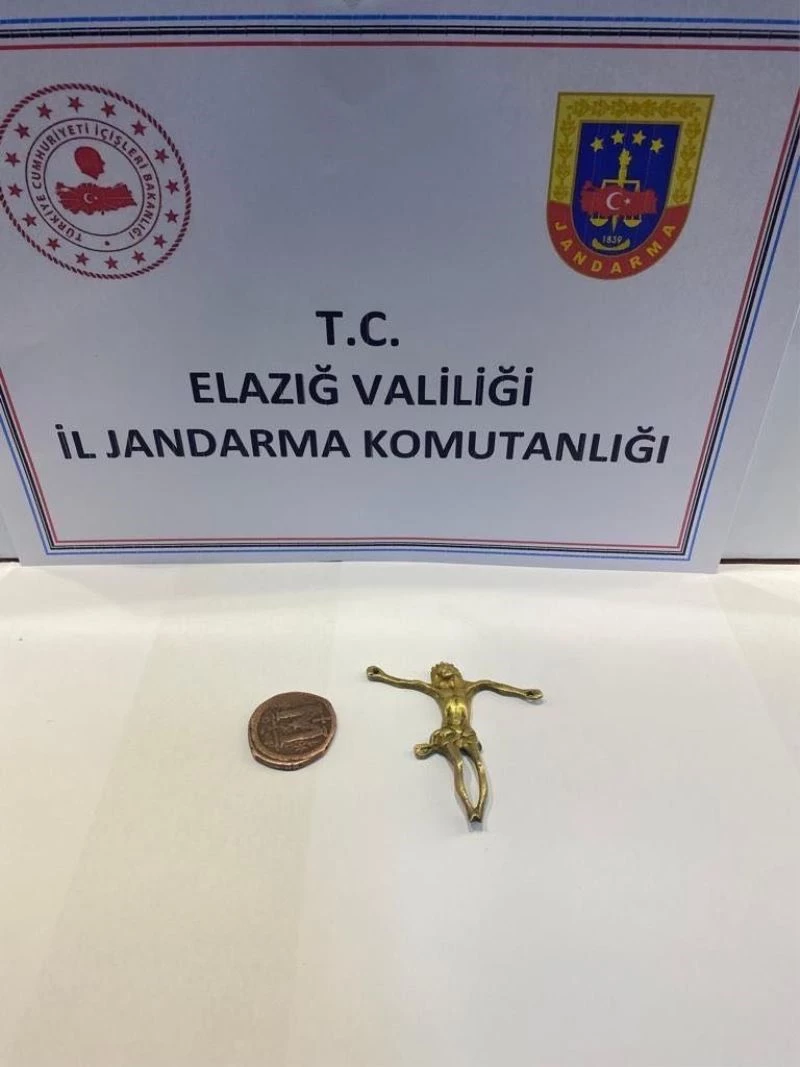 Elazığ’da jandarma ekiplerinin tarihi eser kaçakçılarına yönelik yaptığı operasyonda, Hz. İsa resimli 1 adet metal heykelcik ve 1 adet sikke ele geçirilirken, 2 şüpheli gözaltına alındı.