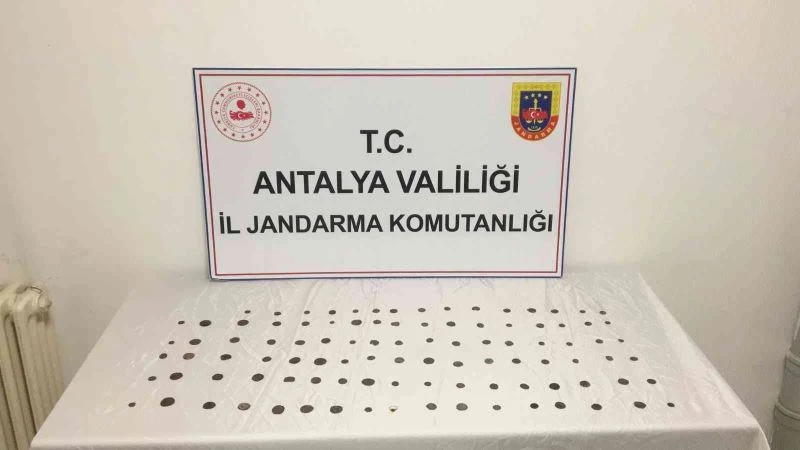 Antalya’nın Konyaaltı ilçesinde jandarma ekipleri tarafından yapılan operasyonda 99 adet Roma dönemine ait sikke, 1 adet Roma dönemine ait obje ele geçirildi.