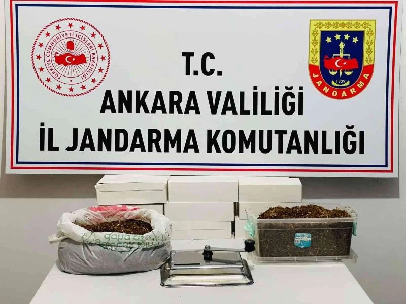 Alınan bilgiye göre, Ankara İl Jandarma Komutanlığınca kaçak ve bandrolsüz tütün ürünleri satışının önlenmesine yönelik sürdürülen çalışmalarda Beypazarı ilçesi Ayvaşık Mahallesi’nde A.Y. adlı şahsın kaçak ve bandrolsüz tütün ürünleri satışı yaptığı bilgisine ulaşıldı. Beypazarı Cumhuriyet Başsavcılığı koordinesinde şahsın adresinde yapılan aramada 2.5 kilogram tütün, 2 adet tütün sarma makinası, 2 bin adet boş makaron, bin 400 adet dolu makaron ele geçirildi. Ele geçen malzemelere el konulurken, A.Y. adlı şahıs hakkında adli işlem başlatıldı.