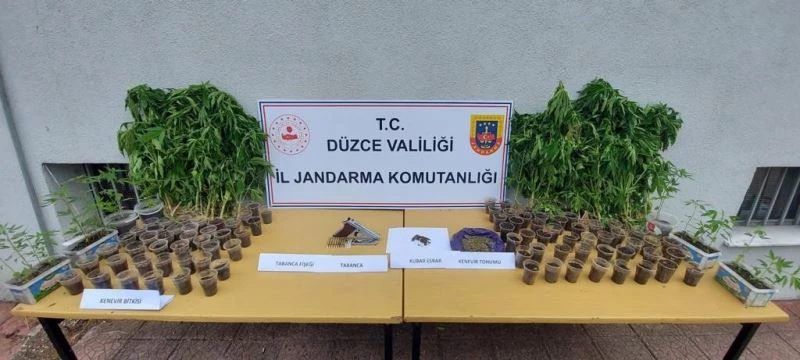 DÜZCE – Düzce’de jandarma ekipleri yaptıkları baskında 291 adet kök kenevir bitkisi, 3 gram kubar esrar ve 200 gram kenevir tohumu ele geçirdi.