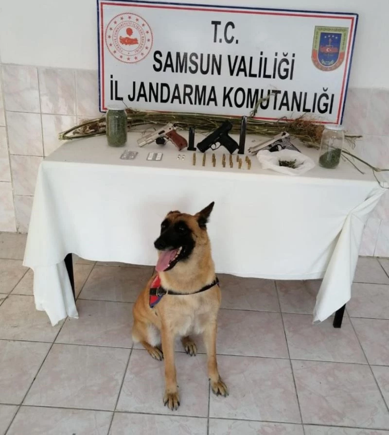 Samsun İl Jandarma Komutanlığı KOM Şube Müdürlüğü ve İstihbarat Şube Müdürlüğünce Bafra ilçesinde İlçe Jandarma Komutanlığı ekipleriyle birlikte gerçekleştirilen operasyonda yapılan arama neticesinde, 210 gram kubar esrar, 5 kök Hint keneviri, 14 adet sentetik hap, 3 adet kurusıkı tabanca, tabancalara ait 4 adet şarjör, 35 adet kurusıkı tabanca fişeği ele geçirildi.