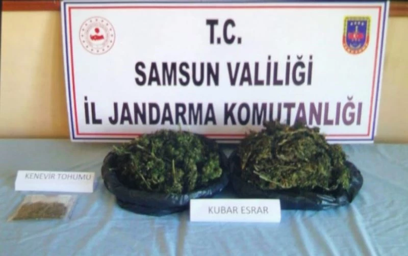 Samsun’da jandarma ekipleri tarafından gözaltına alınan bir kişi ile birlikte kubar esrar ve kenevir tohumu ele geçirildi.
