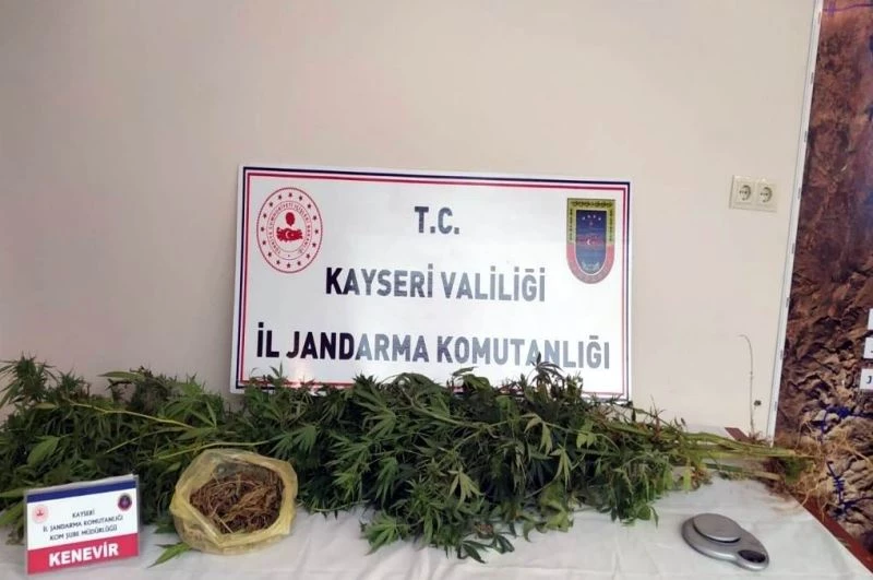 Kayseri İl Jandarma Komutanlığı’nca yapılan çalışmalarda bir miktar hint keneviri ele geçirilirken olayla ilgili 1 kişi gözaltına alındı.