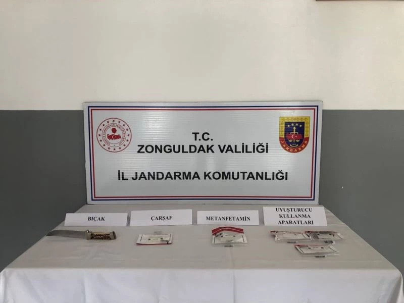Zonguldak İl Jandarma Komutanlığı ekiplerince yapılan uyuşturucu operasyonunda 16,24 gram metamfetamin, 4 adet uyuşturucu kullanma aparatı, 10 adet uyuşturucu madde içmek için kullanılan malzeme ele geçirildi.