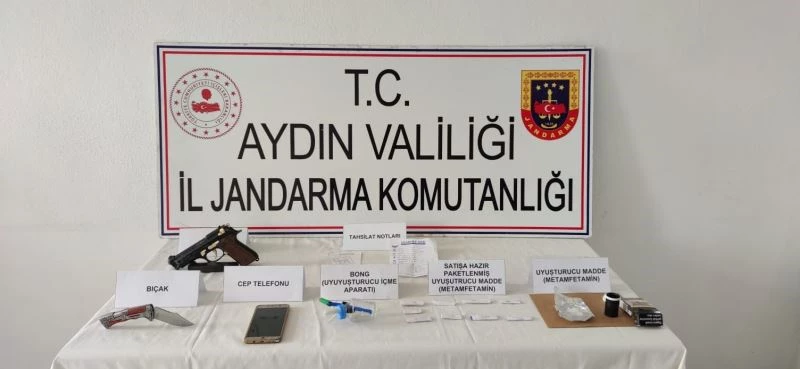 Aydın İl Jandarma Komutanlığı, İstihbarat Şube Müdürlüğü ekiplerince uyuşturucu madde kullanıcılarına ve satıcılarına yönelik faaliyetler aralıksız devam ediyor. Edinilen bilgiye göre Köşk ilçesi Yavuzköy Mahallesi’nde K.T. (29), M.P. (24), Y.Y. (33) ve E.G. (25) isimli 4 şüpheli suçüstü yakalandı. Uyuşturucuyu temin ettiği tespit edilen K.T. (23) isimli şüpheli de yakalanarak gözaltına alındı. Yapılan aramada 55 gram metamfetamin, uyuşturucu kullanma aparatı ve 1 adet 9 mm. tabanca ele geçirildi. Yakalanarak gözaltına alınan 5 şüpheli hakkında adli işlem başlatıldı.
